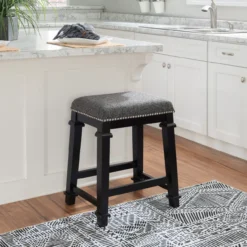 Brooke Gray & Black Faux Leather Backless Padded Counter Stool