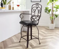 Nate Bronze Faux Leather Upholstered Crested Back Counter Stool