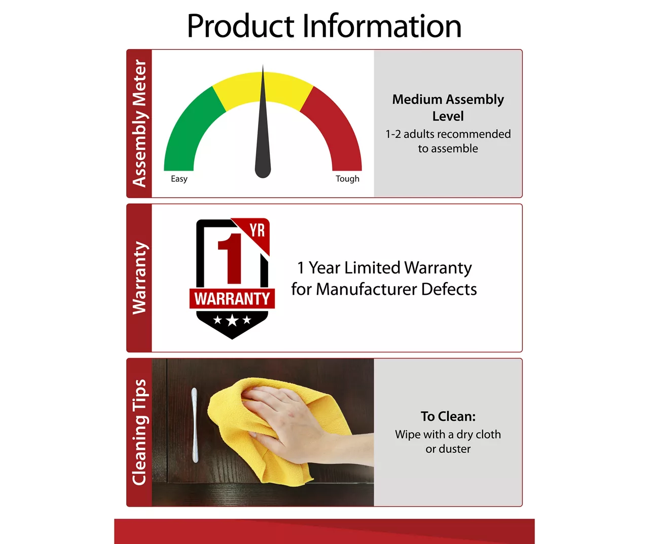 - Molded tabletop, base and face frame are finished in a rich espresso hue