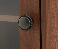 - Round door knobs in a bronze finish