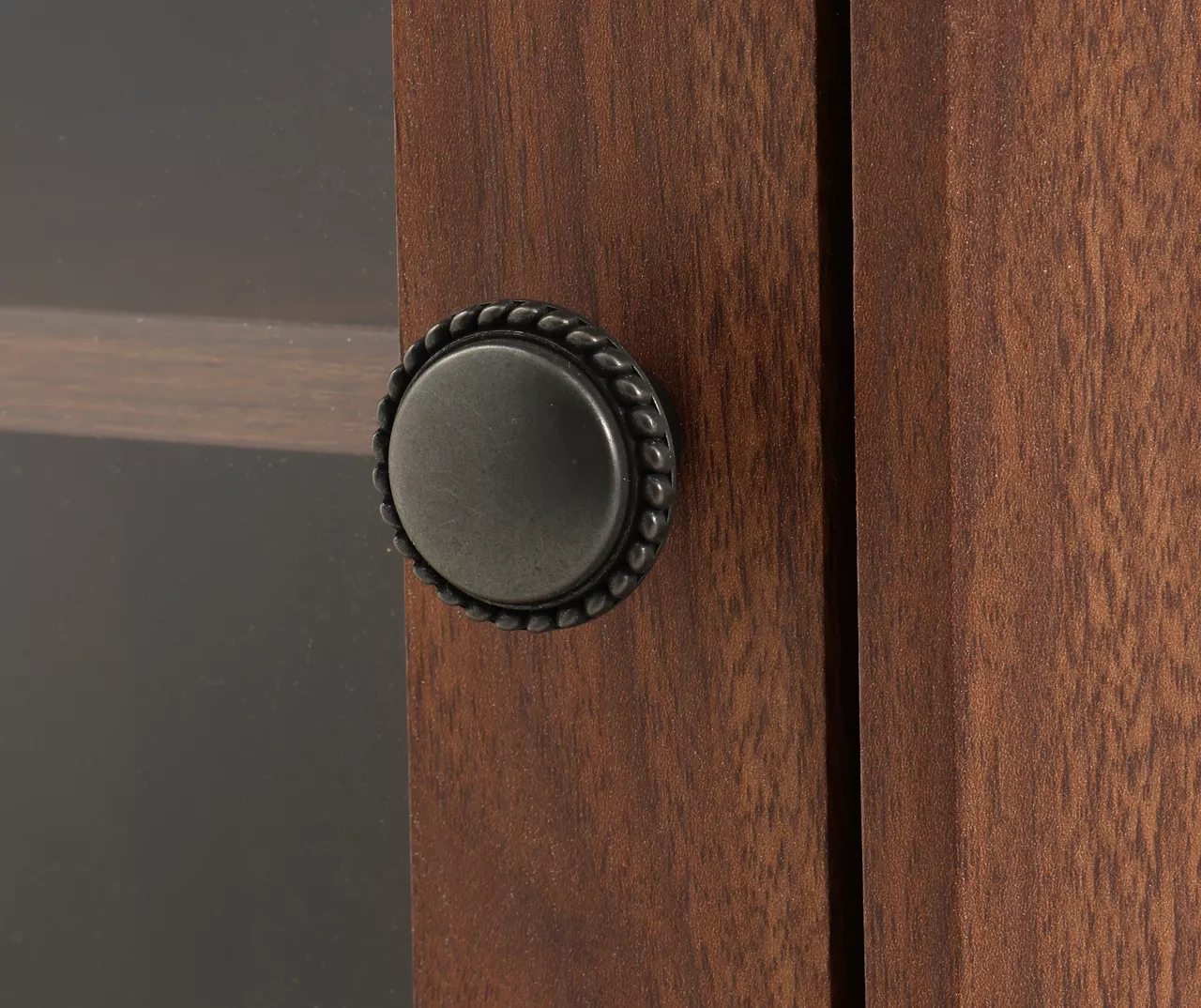 - Rich woodgrain-like cabinet in a brown finish