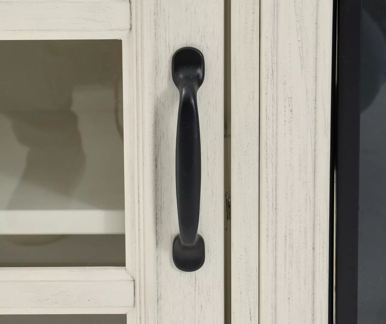 This sleek and stylish electric fireplace console from Real Living helps elevate your favorite living space. A classic white frame features glass pane doors and cabinets for storing DVDs, books and more as the center open shelf offers a home for electronics. The contrasting top with saw mark accents is great for use as a TV stand or displaying your décor statements and treasures. Adjust your comfort with the firebox insert with available temperature, timer, flame effects and brightness levels.