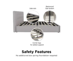 Soft and comfortable, the Ryder upholstered bed with storage is perfect to cozy up any bedroom décor. Its linen upholstery, button-tufted details and foam padding are reminiscent of mid-century style. Dress it up with throw pillows and blankets and you’ll never want to leave your room again! What’s more, the Ryder has drawers for added storage convenience. It also equipped with a bentwood slat system that will provide your mattress with the ventilation it needs to stay fresher, longer. The four contemporary legs and the extra center legs provide the additional support you need.