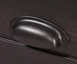 • Single drawer features matte black metal cup handle