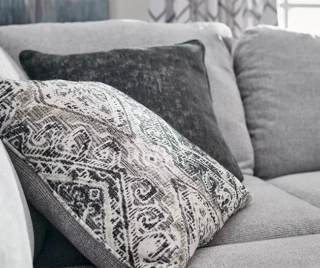 - Throw pillows feature stylish geometric patterns and solid textures