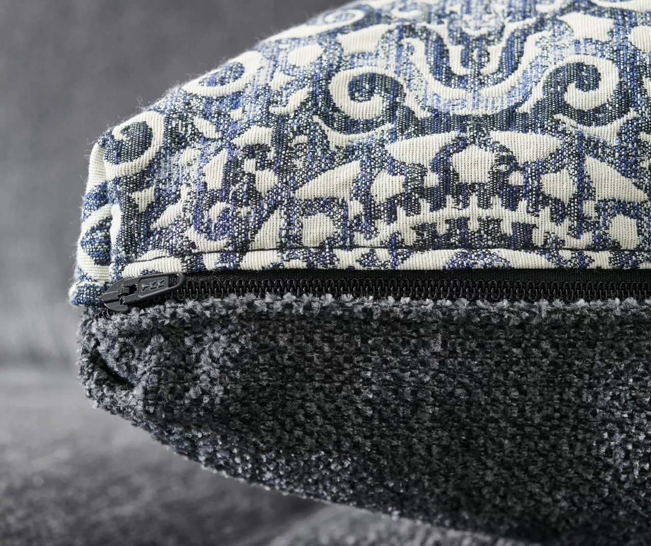 - Includes 5Â stylish accent pillows in designer fabrics with zippered access