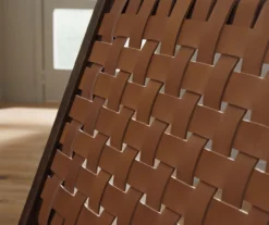 Fayme Camel Armless Leather Woven-Back Lounge Chair - Image 4
