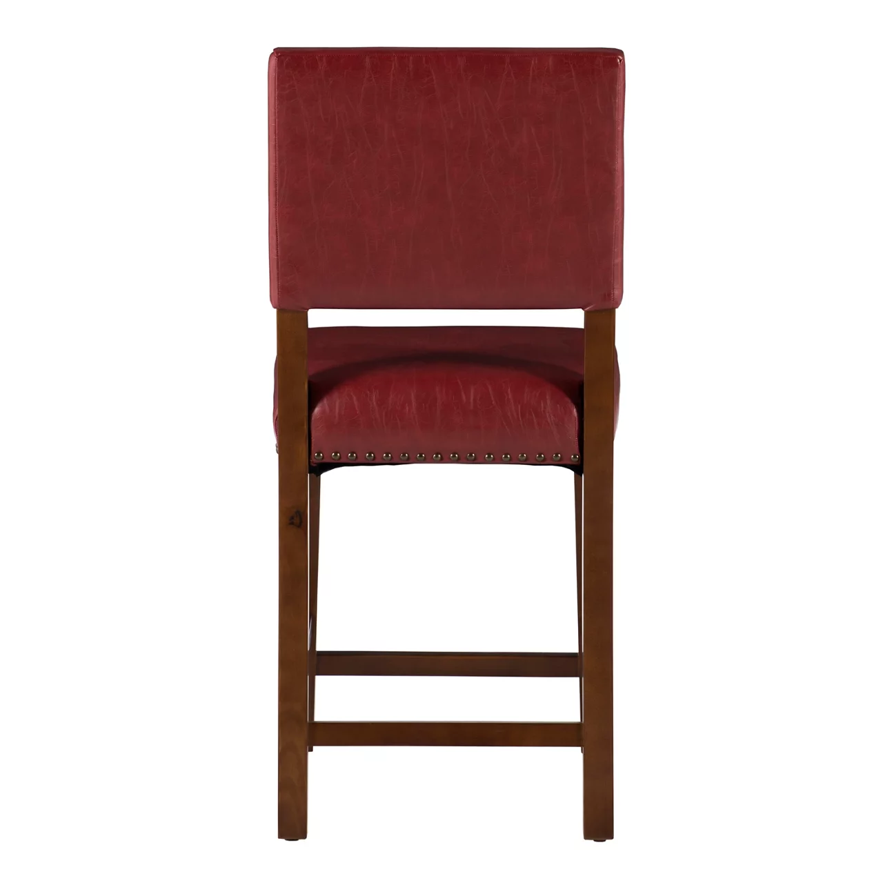 Nailhead trim gleams against dynamic red upholstery to give this counter stool a rugged effect that grounds any space with timeless style. Clean, classic lines suit a variety of settings from rustic to contemporary while the padded seat and foot rests offer comfort and stability.