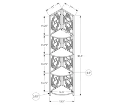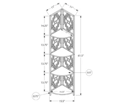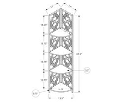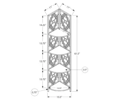 Let this stylish corner bookcase conquer the clutter in your home, apartment or condo. The black metal frame features a transitional design with four matching display shelves perfect for photo frames, plants, accessories and other decorative items. This storage accent piece will add a touch of elegance to any room in your home.