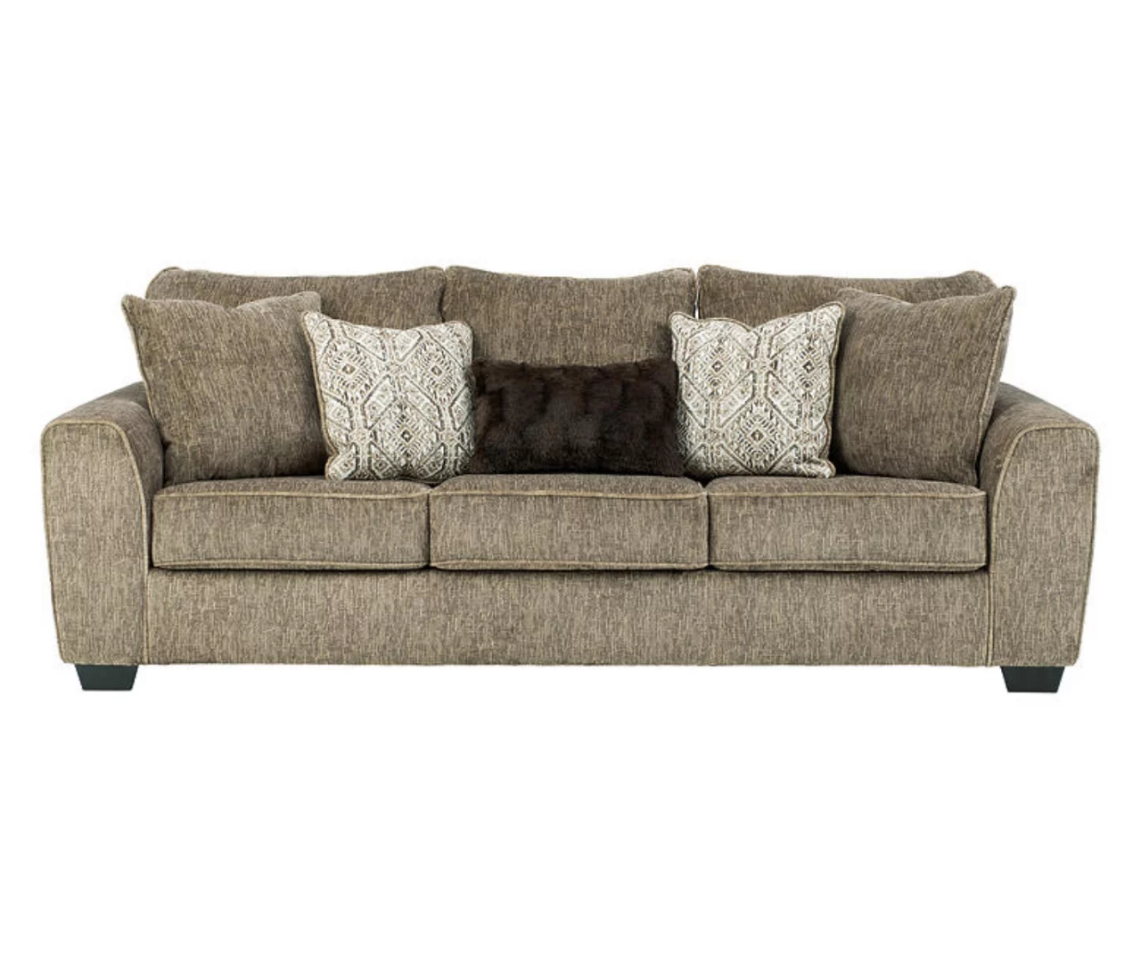 Whether you’re lured by its cool, contemporary profile, fabulously soft upholstery or generous scale, you can’t deny how beautifully this sofa serves up a designer aesthetic – at an incomparable value price. Rest assured, its rich chocolate brown upholstery feels every bit as velvety soft as it looks. With wedge-cut track arms and crisp box cushions to suit your modern mood, this chic sofa makes luxury living so comfortably within reach.