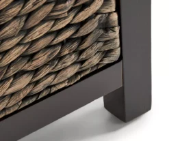With its black distressed finish and bold frame, this wicker trunk offers both extra storage and farmhouse style in any space. Fill it with linens, blankets and pillows. The black round rings allow you to move it around any space. Interior brackets help the lid remain open while adding or] removing contents. Whether used as an ottoman or coffee table or placed at the base of your bed, it will add all the warm charms of an antique market find.