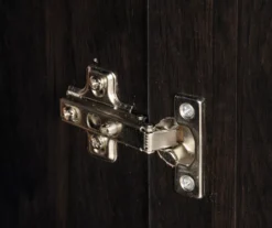 Extra storage is always a plus! This storage cabinet from the Sauder has room for all stuff. This double door storage cabinet features four adjustable shelves for customizable storage options depending on your needs. Whether you are storing books, binders or linens, this two-door storage cabinet will adjust quickly. A full-width upper shelf allows it to be the perfect place to stash bins, blankets, board games and more. Finished in dark Cinnamon Cherry, this tall cabinet is perfect for the kitchen, basement, garage or anywhere you need a storage solution.