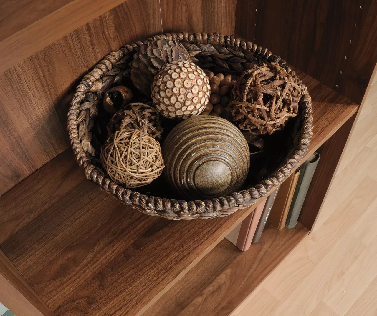 A simple and modern solution to organizing books, tabletop décor and more from a beautiful 5-shelf bookcase from Sauder. The convenient size fits anywhere from a kitchen to a dorm room. This woodgrain brown finish looks great with any style décor and elevates the appearance of your space.
