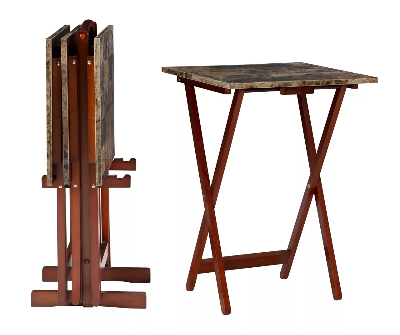 - Includes 4 tray tables and stand